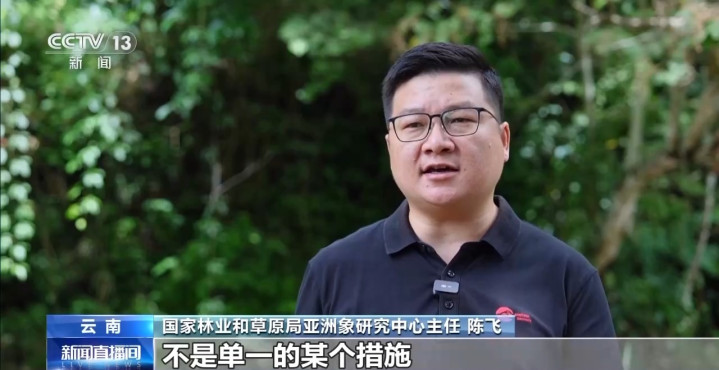 国家林业和草原局亚洲象研究中心主任陈飞:亚洲象保护的中国方案不是单一的某个措施,而是多措并举的一项系统工程。保护优先、科技赋能、区域协同、法治保障,这个中国方案其实在全球范围内也是赢得了广泛的赞誉。