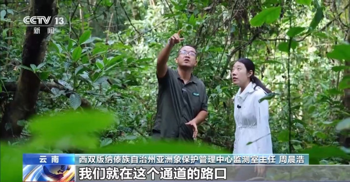 西双版纳傣族自治州亚洲象保护管理中心监测室主任周晨浩:这就是我们国家级自然保护区的一条通道,亚洲象就是从这个通道下来,我们就在这个通道的路口给它安装了一个红外相机,进行实时的监测预警。